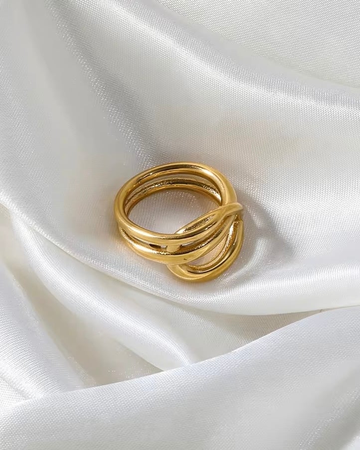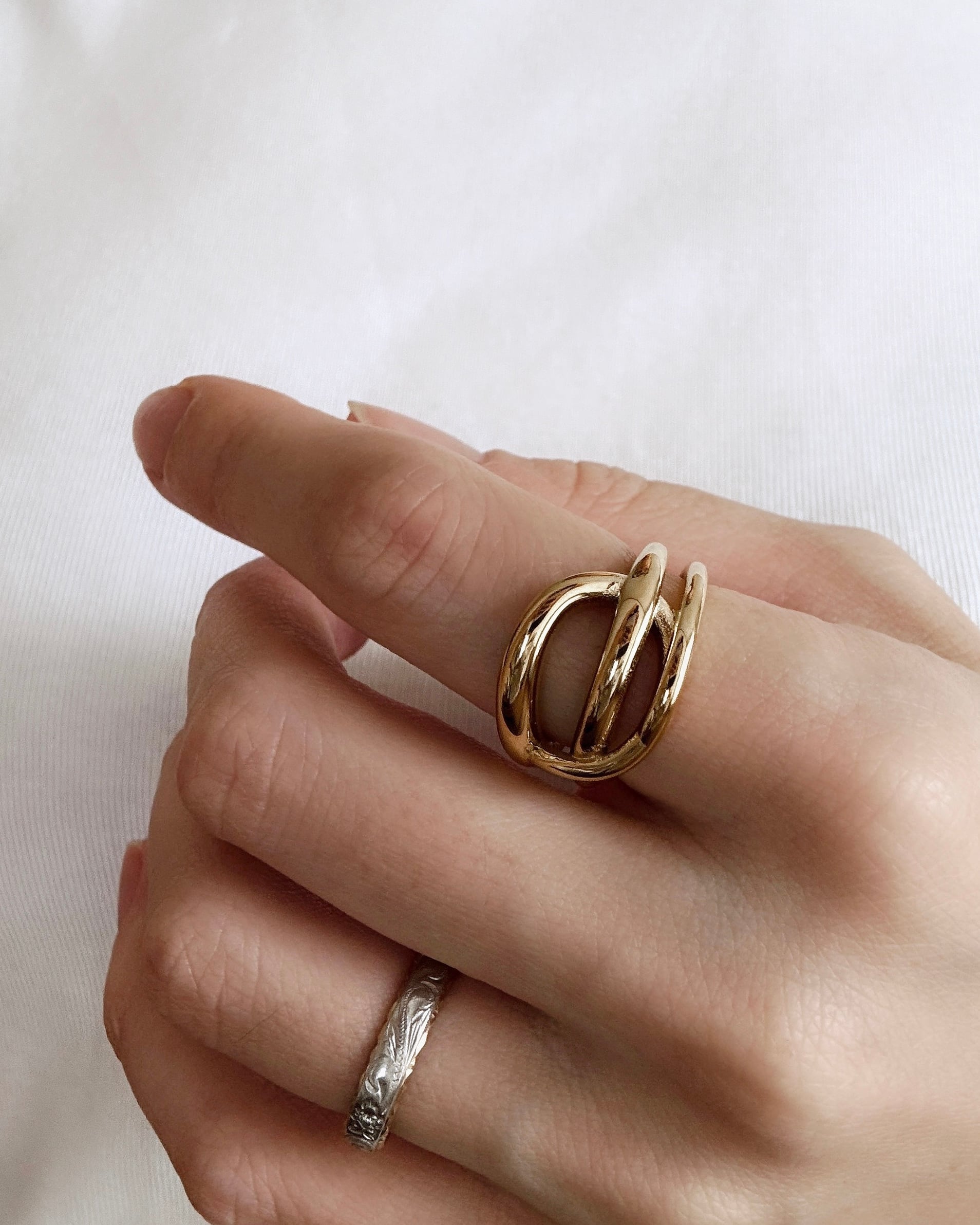ラインが交差し重なり合う洗練されたデザインのリング。抜け感のあるスタイルで、指元を優雅に演出します。デザイン性の高いフォルムが、どんなシーンでもおしゃれを楽しむあなたを引き立ててくれます。