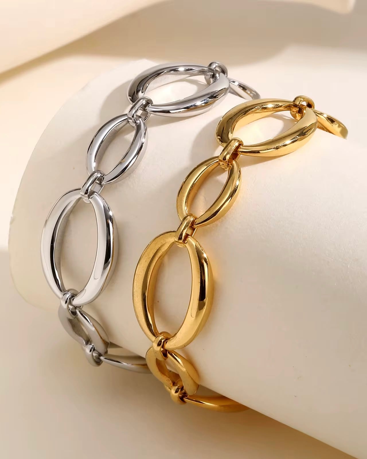 大ぶりなオーバル型のチェーンを連ねた、シンプルながら存在感のあるブレスレット。