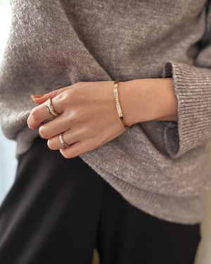 シャープなスクエアカットのジルコニアを贅沢に並べたデザインは、どの角度から見ても美しく、光を受けるたびに静かにきらめきます。