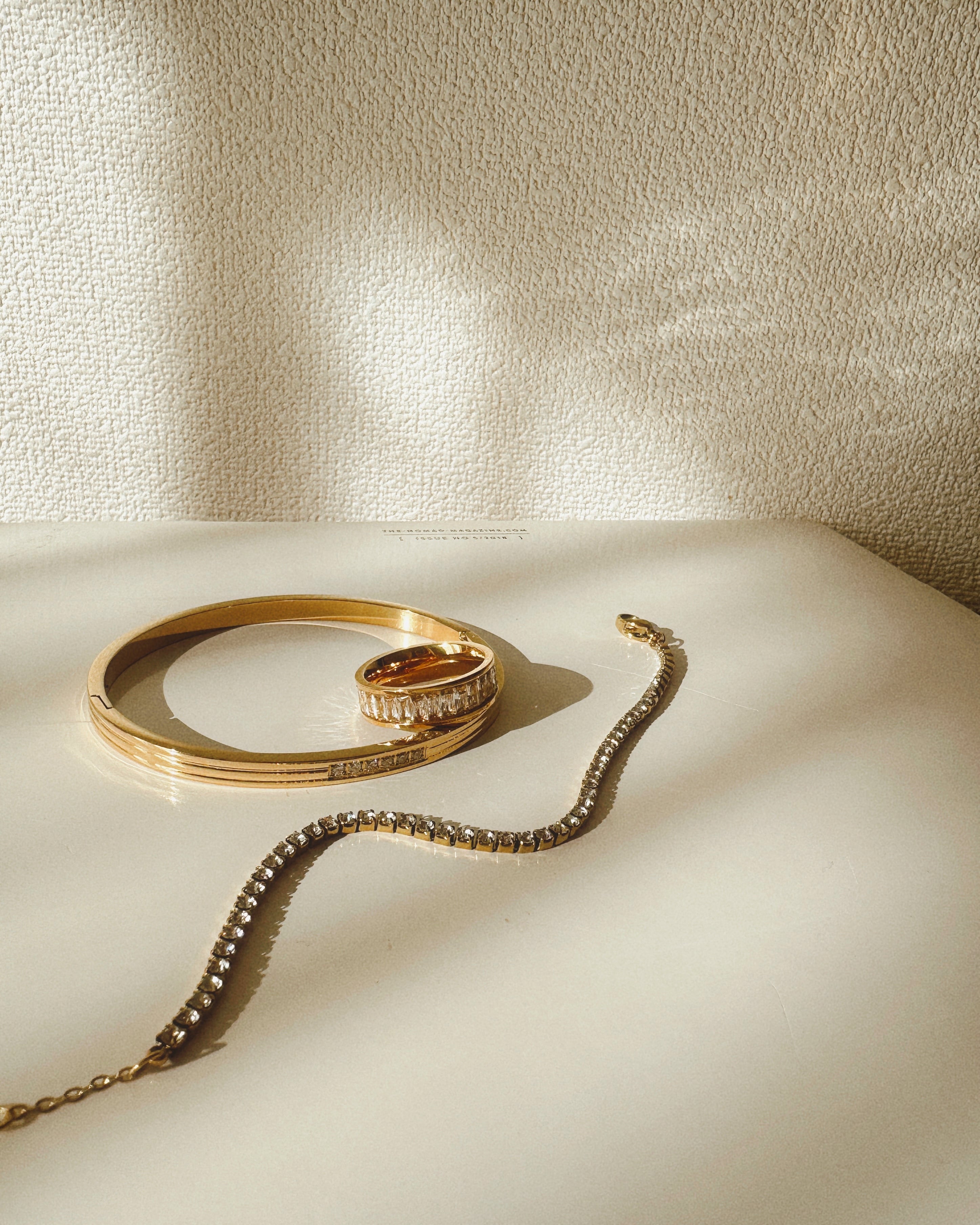 シンプルなゴールドのフレームが、ストーンの透明感と輝きをより引き立てます。