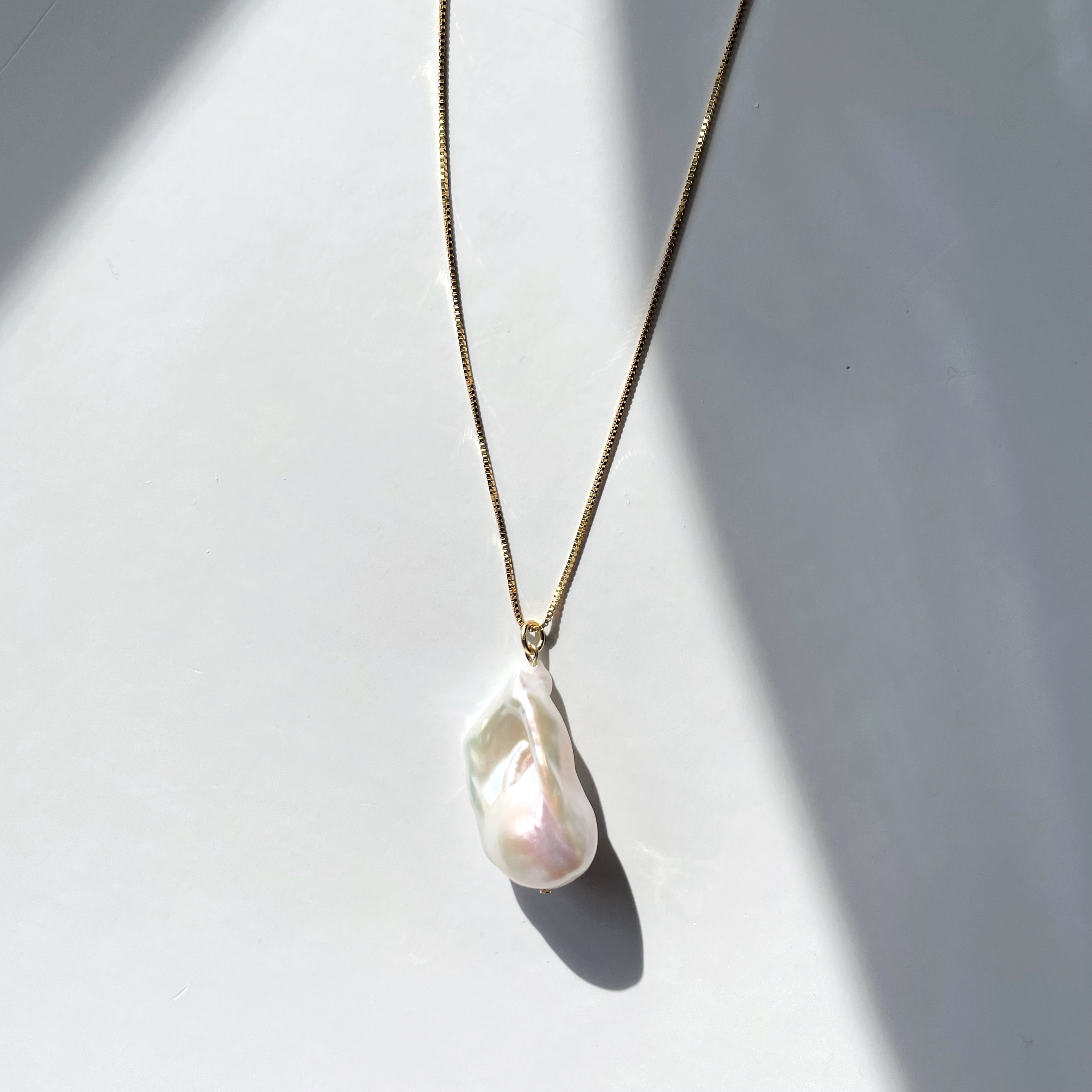 大粒の天然バロックパールの柔和な彩光が美しいネックレス。