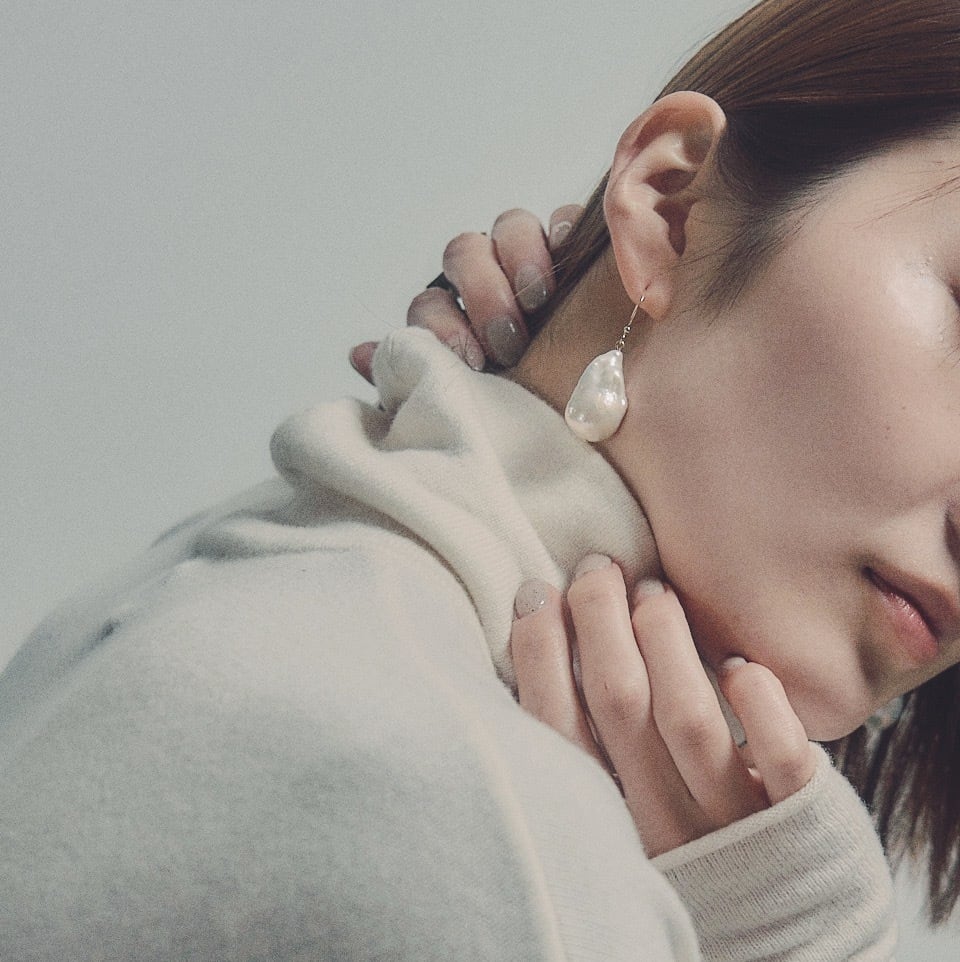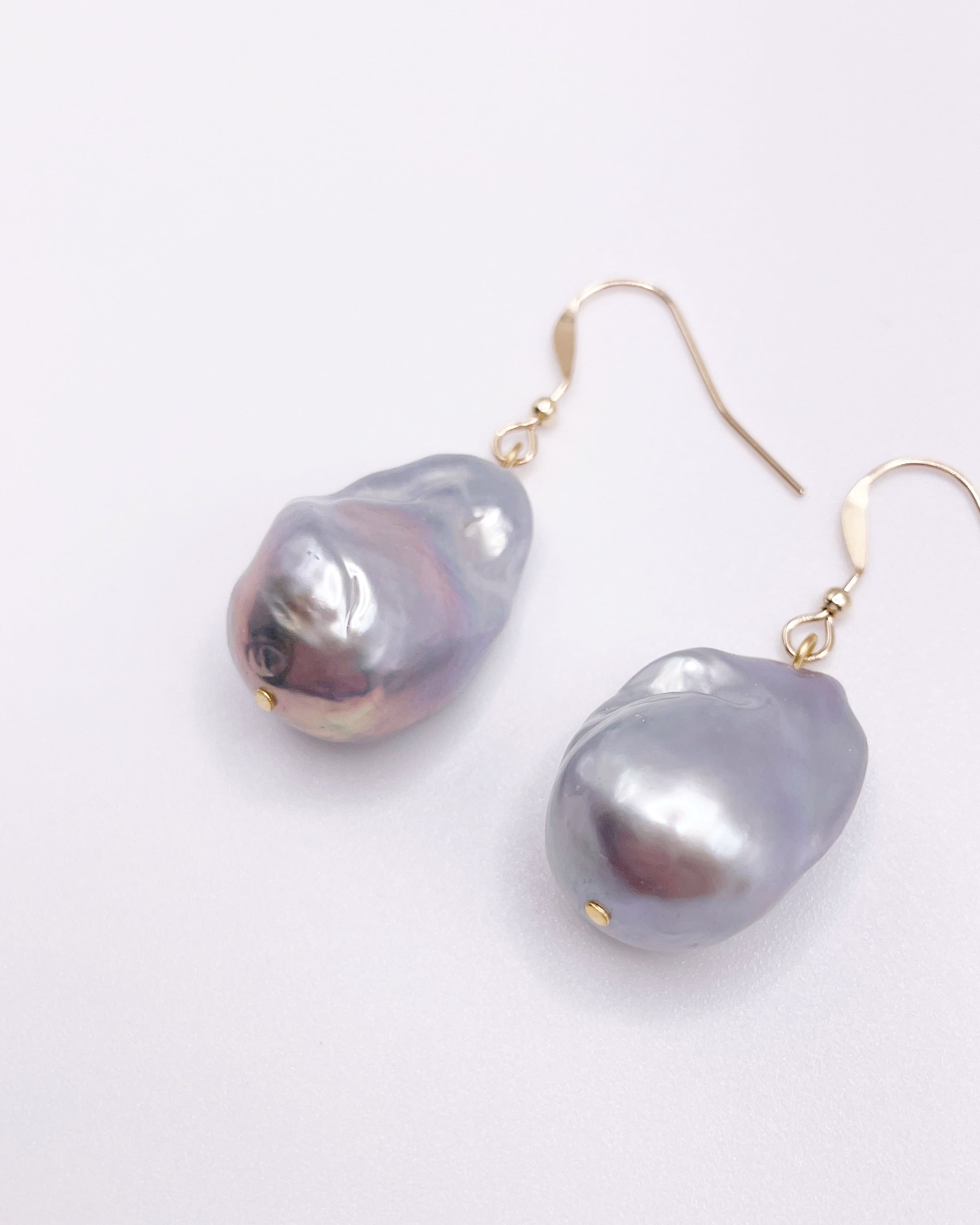 大粒の天然バロックパールの柔和な彩光が美しいピアス。