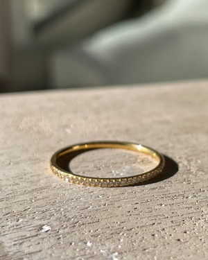 プレーンな細めのリングにジルコニアが輝き、シンプルながらもさりげなく目を引くポイントに。