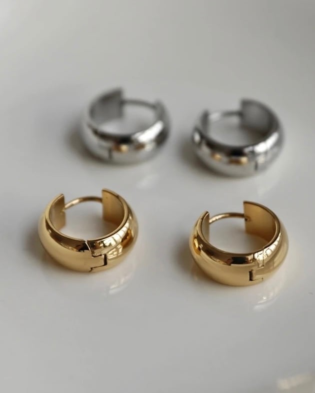 小ぶりながら太めのサイズ感、ころんと丸みのあるフープピアス。