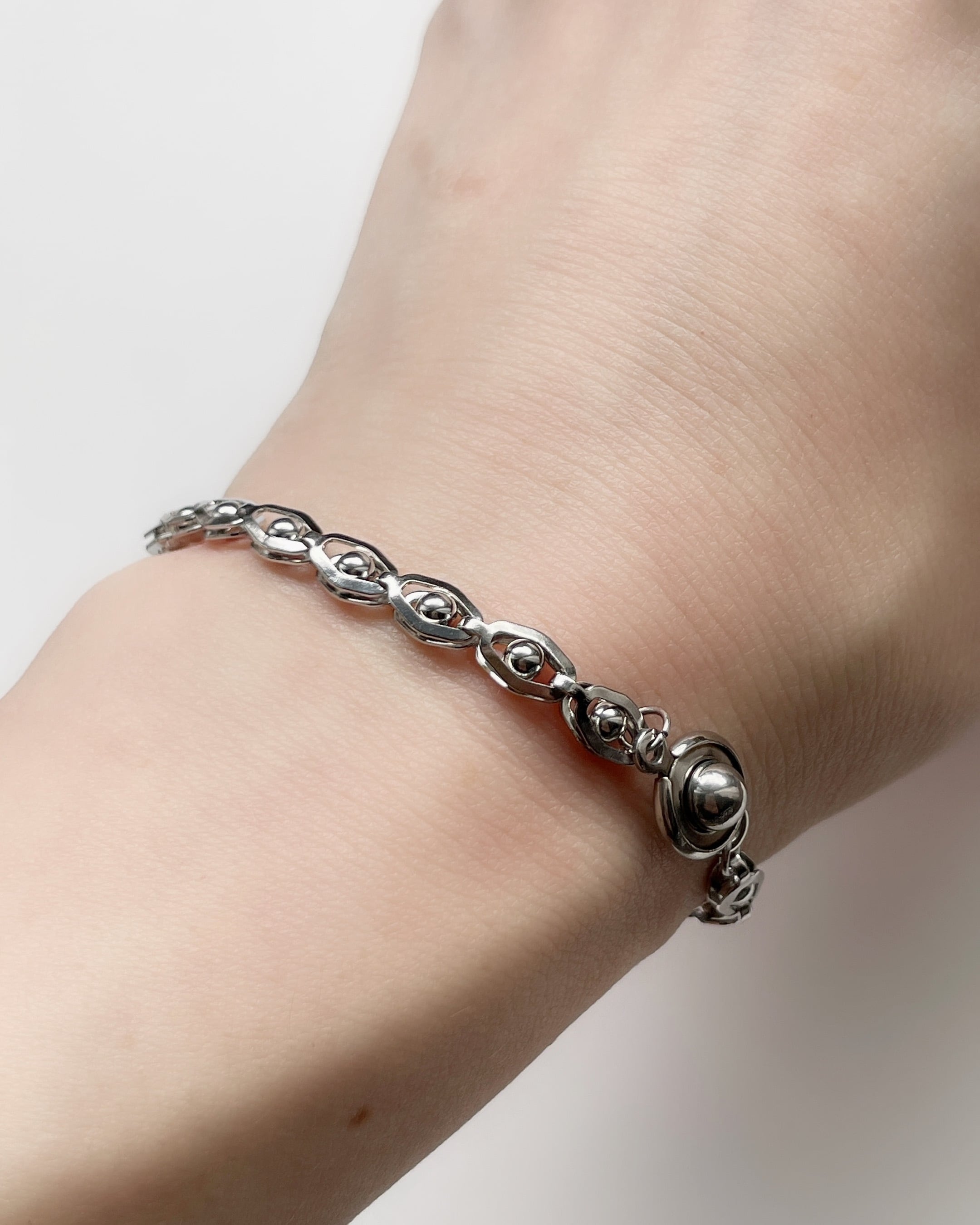 個性的なチェーンデザインが魅力のブレスレット。