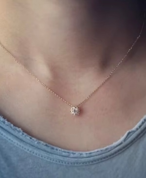 華奢なチェーンが肌に溶け込み、花のモチーフをさりげなく際立たせてくれます。